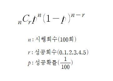 아래의 식(이항분포정리)을 적용하면 실제 모의입찰과 매우 유사한 모의입찰결과를 확인할 수 있습니다.