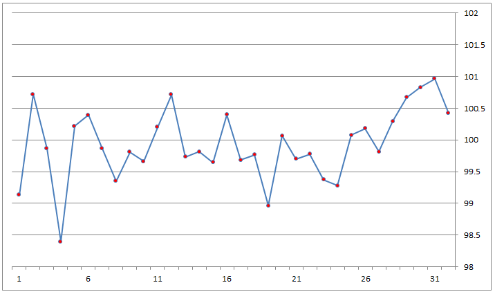 아무리 예가흐름에서 일관성 있고 규칙성있는 패턴을 보인다 해도, 그것은 단지 우연한 결과일 뿐, 그것과 미래에 일어날 사건과는 아무런 관계가 없습니다.