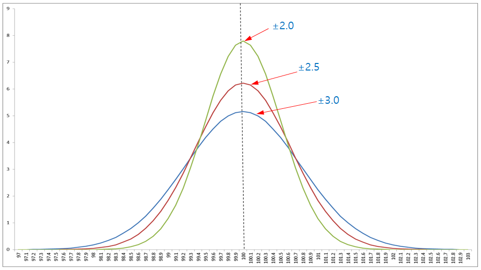아래의 그래프에서 보여주듯이 예가사정율은 97.0%에서 102.9%에 이르기까지 모든 구간에서 구조적으로 예가가 나올 확률이 전부 다릅니다. 즉 애초에 등가성의 원칙을 위배하고 있는 것입니다.