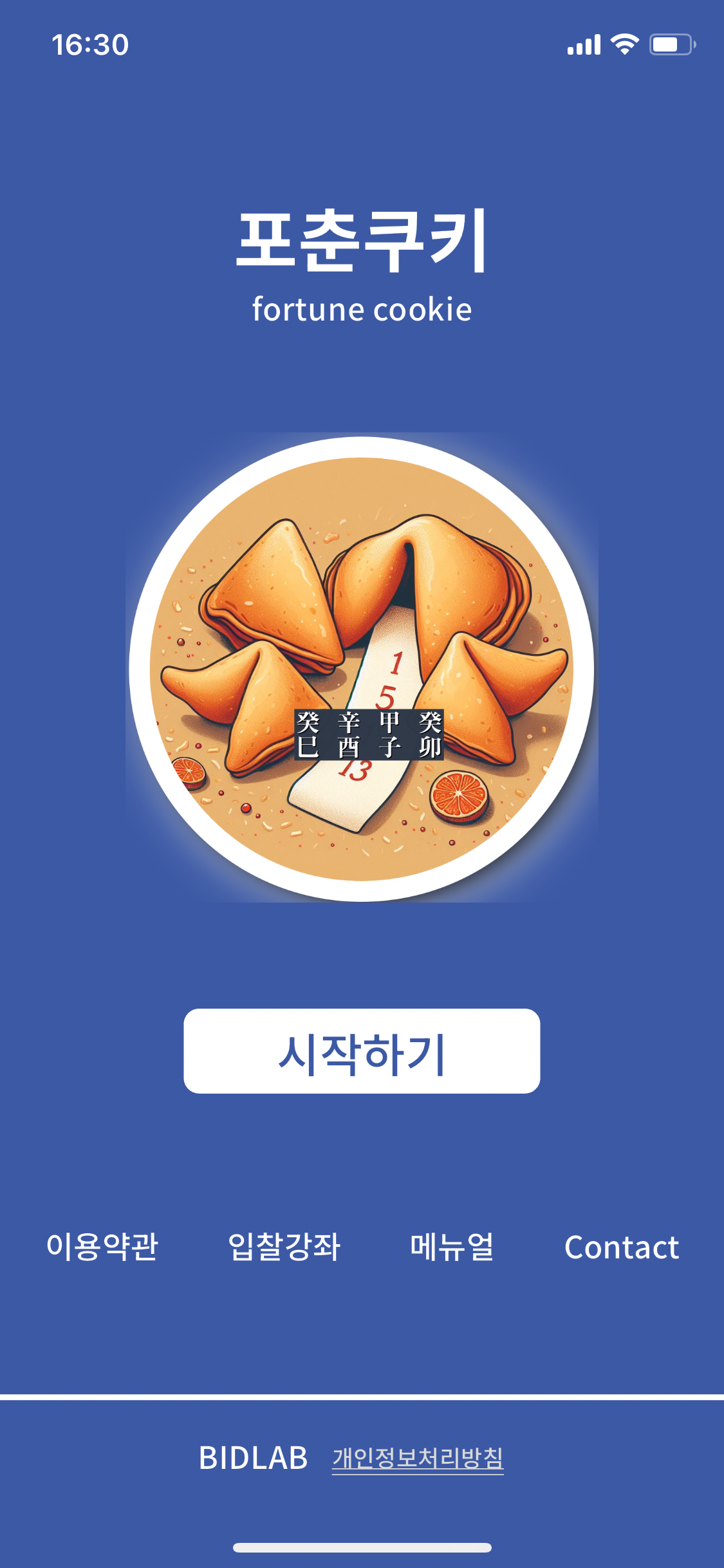 ① 포춘쿠키 앱을 실행하고 조건설정화면으로 들어갑니다.