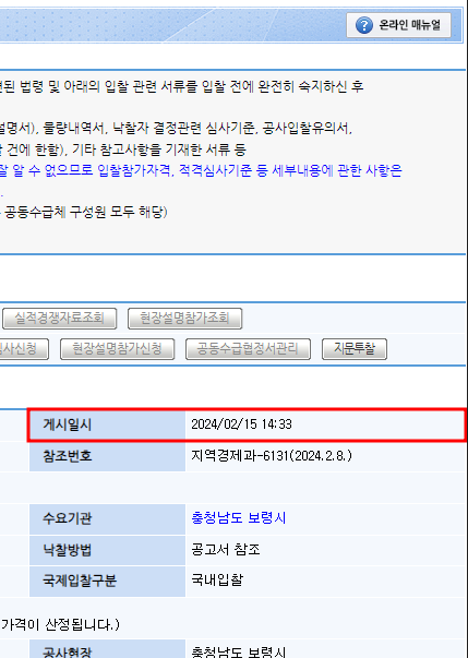 ※ 나라장터 입찰의 경우 ⇒ 게시일시를 입력