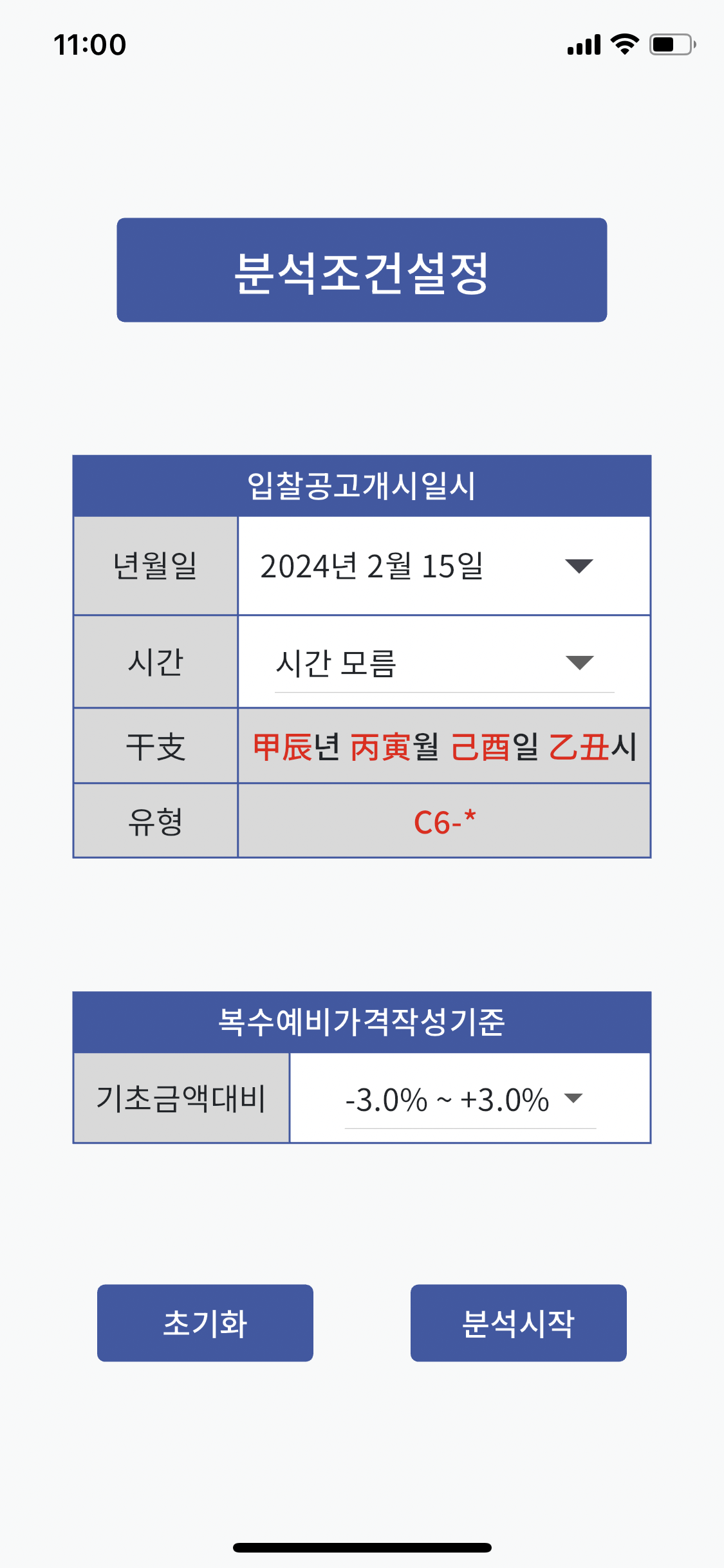 ② 포춘쿠키 앱에서 해당 입찰건의 "공고일시"와 "복수예비가격작성기준"을 설정하고 포천쿠키 추천리스트를 작성합니다.